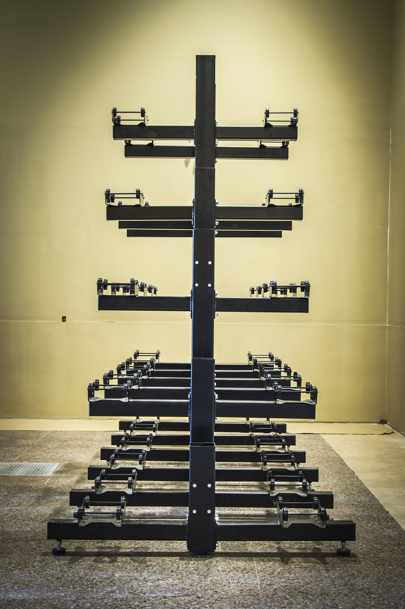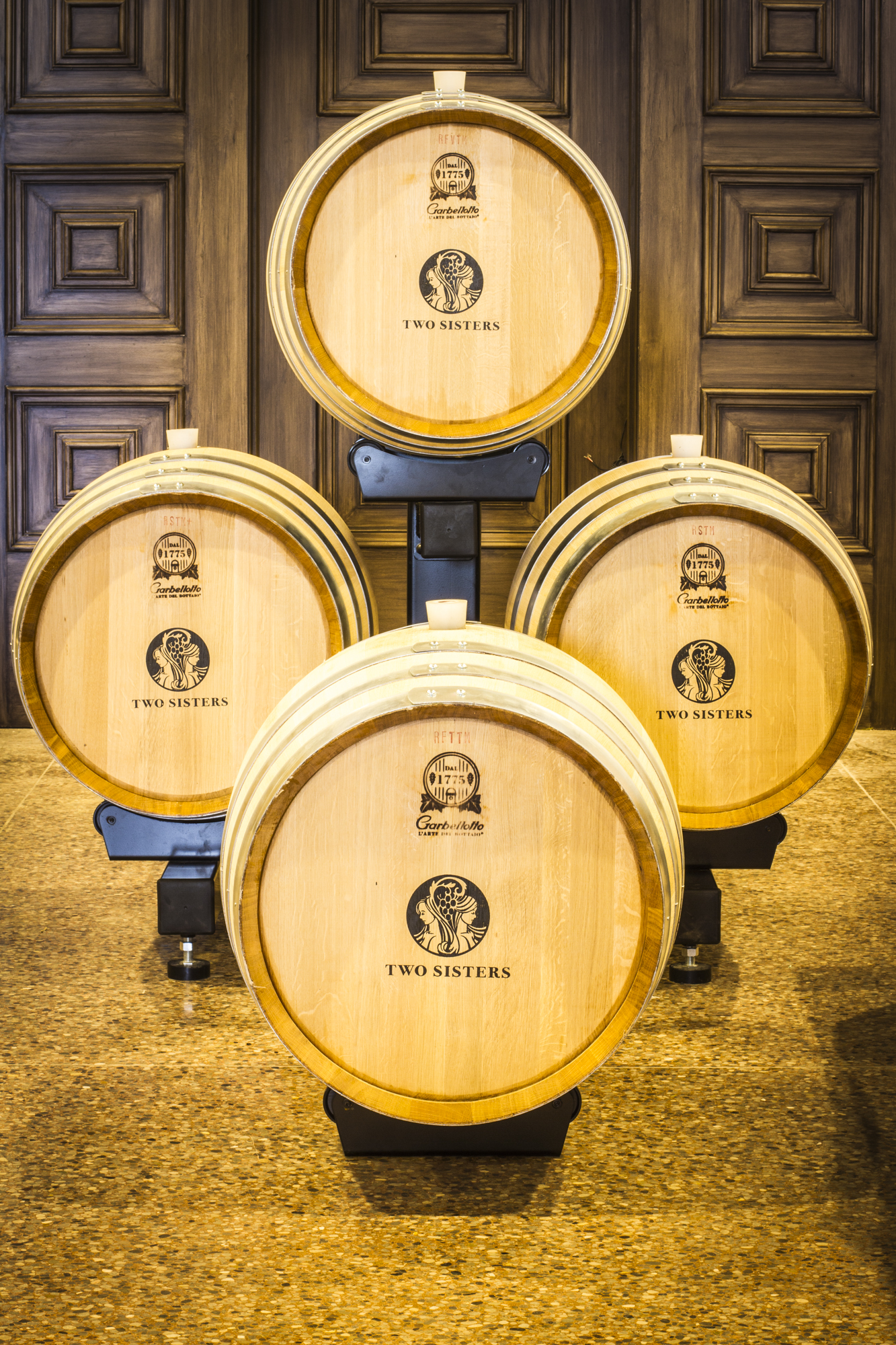 Hamill designs, builds, and installs this unique modular floating barrel system for wineries and other industries requiring barrels to be accessible. This system can hold anywhere from 3 barrels and upwards. Our largest installation to date is 410 barrels in the same cellar. All barrel systems work for any layout you may have. This system was installed at the Two Sisters Winery. We are able to place the barrel racking system in the building to however it fits your design and need.